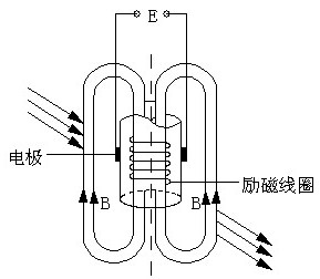 插入式電磁流量計傳感器實際上是一種液體流速測量儀表。它是應用法拉第電磁感應定律的原理制成的流速測量儀表。下圖是插入示電磁流量計基本工作原理的示意圖。用一個長桿將一個小的電磁流量傳感器插入到被測量管道中規(guī)定的位置,導電流體垂直流過傳感器的工作磁場時(轉換器向傳感器提供勵磁電流時,在勵磁線圈構成的勵磁系統(tǒng)中便產(chǎn)生工作磁場),相當于導體在磁場中作切割磁力線運動。根據(jù)法拉第電磁感應定律可知,在導體的兩端產(chǎn)生感應電動勢。此感應電動勢由接觸流體的一對電極來檢測。電動勢的大小與磁感應強度B、兩極間距離L和流體的平均流速呈正比。即