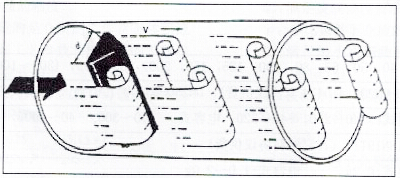在氣體流體中設(shè)置三角柱型旋渦發(fā)生體,則從旋渦發(fā)生體兩側(cè)交替地產(chǎn)生有規(guī)則的旋渦,這種旋渦稱為卡門旋渦,如右圖所示,旋渦列在旋渦發(fā)生體下游非對稱地排列。