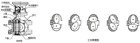 二、橢圓齒輪流量計工作原理: