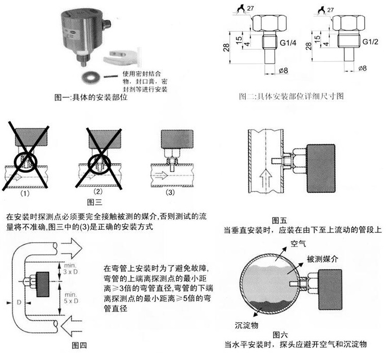 ·在扭緊流量開關時要使用適當的工具(最好使用規定了扭力矩的工具)這樣可以避免產品的損壞和松動