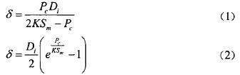 作用在筒壁上的工作壓力為50Mpa,設計壓力范圍在0.1Mpa~100Mpa之間,依據中華人民共和國行業標準JB473219952005年確認)《鋼制壓力容器一分析設計標準》中規定:當設計壓力PC0.4KSm時,按公式(1)確定壁厚;當設計壓力PC0.4KSm時,按公式(2)確定壁厚。