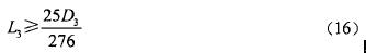 先后把式(7)和P=50代入式(6),然后把式(6)、(7)代入式(5),最后把式(5)和[σ]137代入式(4),整理得關于L,的一元二次不等式(D1),為常量)為: