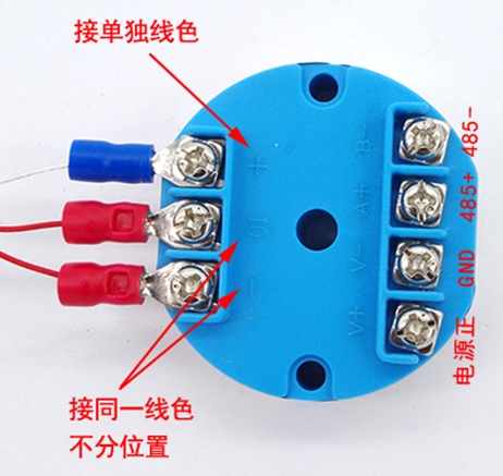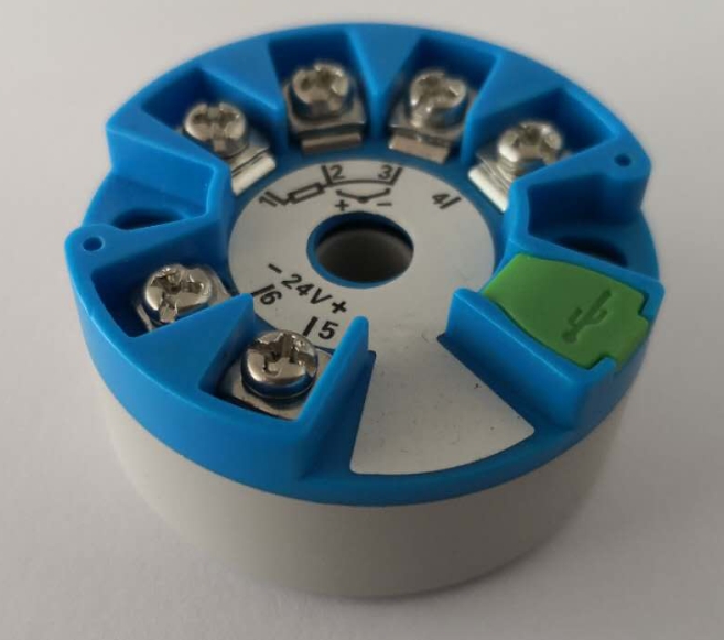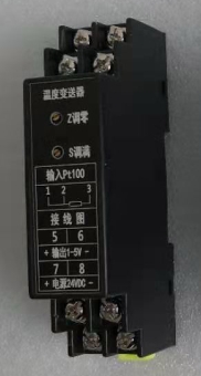 1. 標準信號處理:由于熱電阻或者熱電偶溫度傳感器輸出的信號通常在輸出距離較近的時候使用其信號強度與線性是沒有問題的,但是在輸出距離遠的時候其信號就顯得很微弱或非線性了,所以就要采用溫度變送器將熱電阻或者熱電偶的信號轉換為標準信號(如4-20mA、HART、RS485),便于系統統一處理。而溫度變送器內置信號調理電路可補償傳感器非線性誤差,提升整體測量傳輸的精度。同時輸出標準化信號,可以有效減少后續電路復雜度和兼容性問題。以下為溫度變送器模塊接線示意圖: