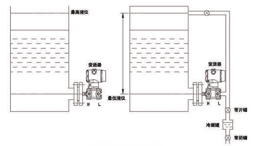 差壓式液位變送器測量的液位與實(shí)際液位之間存在著一定的偏差。為了使變送器能夠準(zhǔn)確測量顯示液位高度,需要對差壓式液位變送器進(jìn)行遷移處理,包括無遷移、負(fù)遷移和正遷移三種情況。而所謂的“遷移”是在量程不變的情況下,將液位變送器的測量范圍進(jìn)行移動(dòng)調(diào)整。但是需要我們注意的是變送器零點(diǎn)的正、負(fù)遷移和零點(diǎn)調(diào)整是不一樣的。