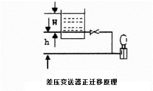 變送器安裝位置與測量液位水平高度不同是實際測量中的普遍現象,如圖2所示為--種遷移形式。