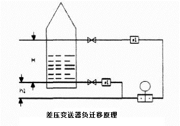 如果分別假設H為0和最大值時,那么就可以得到壓力差ΔP兩種不同的數值情況,這也恰恰說明了當H為0時,4mA為差壓變送器的極限值,而但H為最大值時,隔離液實際密度要遠遠超出預想值。因此,也為處于最高位置時,由于負壓室壓力要比正壓室壓力大,致使實際液面儀表輸出壓力值與理論推算不符,這樣就嚴重影響到了液位與變送器輸出壓力間的平衡”。經過分析,要想維持實際液面與儀表之間的關系,將來自負壓室引壓管線的靜壓力去除使最根本措施,這期間就需要用到差壓變送器負遷移技術處理,其中遷移量可以看作是plgh。