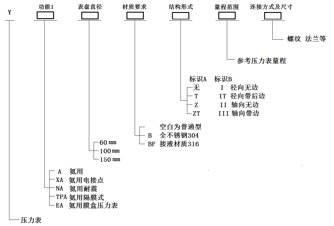 YA系列氨用壓力表主要適用于在化肥生產過程中或制冷設備中用來測量氨的液體、氣體或其氨混合物等對密閉系統的壓力的測量;氨用壓力表亦可用于測量對普通碳素鋼、奧氏體類不銹鋼、合金結構以及錫鉛合金釬焊料等無腐蝕作用的、非結晶和非凝固的各種介質的壓力。